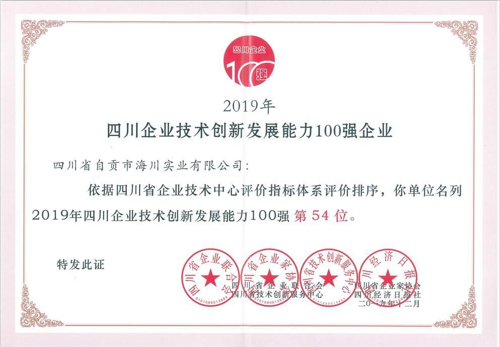 2019年四川省企業(yè)技術(shù)創(chuàng)新發(fā)展能力100強